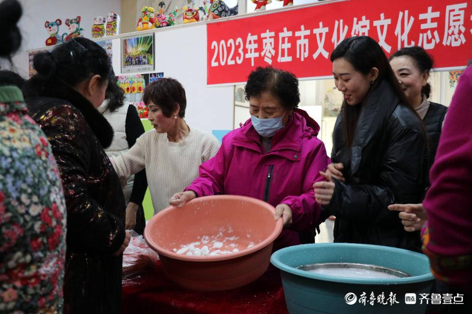 欣赏完精彩的演出后,枣庄市文化馆的志愿者们将提前准备好的元宵制作食材,提供给社区居民参与元宵制作的环节。志愿者们首先向居民介绍了元宵节的文化内涵,普及民俗传统的同时将传统文化内容融入传统佳节,倡导文明过节新风尚;接着进行简单分工,以及提醒活动时的注意事项,随即就拉开了元宵制作的的序幕。面对着琳琅满目的材料,社区群众都兴奋地互相分享着元宵制作的经验,大家劲头十足。