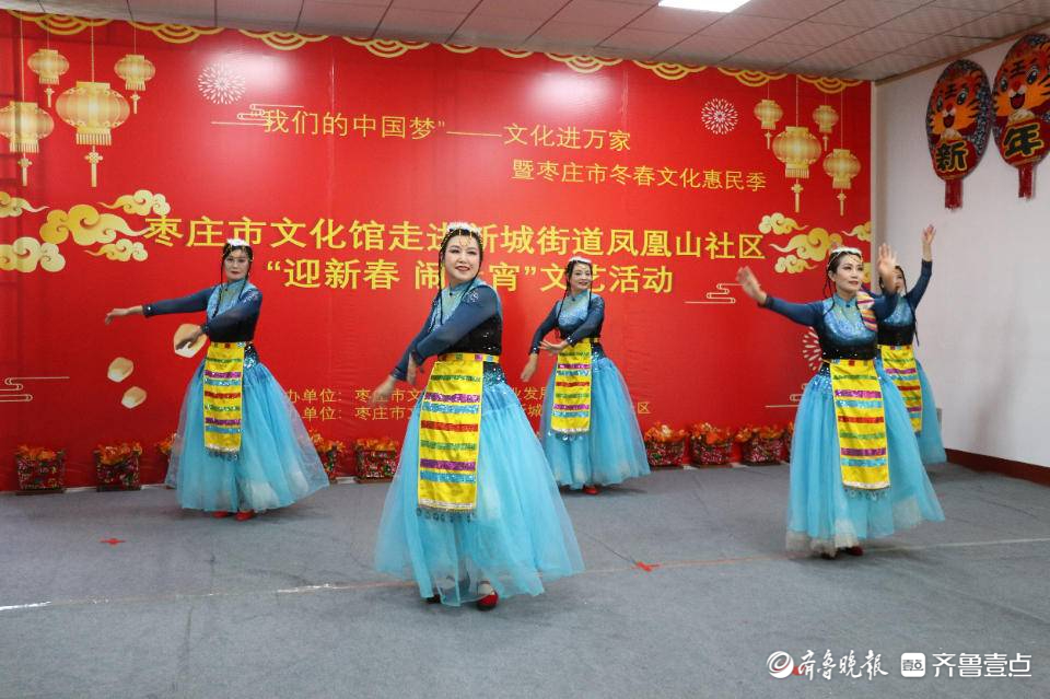 为大力弘扬中华优秀传统文化,丰富辖区群众的文化生活、活跃节日气氛,让大家在欢乐、祥和的氛围中度过元宵佳节,2月4日上午9点30分,枣庄市文化馆进社区冬春文化惠民文艺演出在歌舞《欢聚一堂》中拉开帷幕。