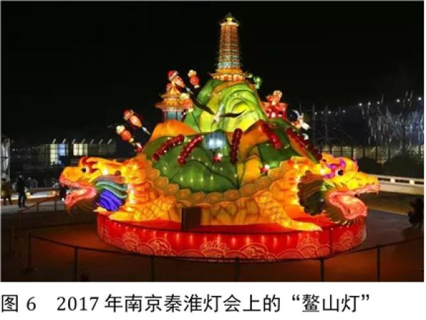 总体来看,最早出现于北宋时期的“鳌山灯”,长期作为上元节(元宵节)最具代表性的大型灯景,是以灯彩景观的物质形态对上古“鳌山”神话意象的具象化呈现,并逐渐融入了佛教、道教信仰元素。明代以后,“鳌山灯”的具体形制和意象内涵更加丰富,呈现出世俗化、地方化的特征,但对于“形似鳌山”“金玉亭台”“花树丛生”“仙圣所居”等神话母题意象仍有一定程度的呼应。当代各地元宵灯会上展示的“鳌山灯”体现了鲜明的时代特征,不仅超越了传统鳌山灯棚“形似鳌山”的比喻义,进一步强化了对“巨鳌”、“仙山”元素的具象化呈现,同时还充分发挥现代科技优势提升灯组景观的视觉体验效果,加之主题元素拓展与内涵创新,使其象征意义更为丰富,从而使这一传统节庆景观在历史传承中实现了创新发展。