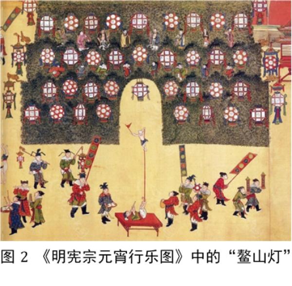 明代是“鳌山灯”形制进一步发展的重要时期。据《皇明通纪集要》记载,永乐十年正月元宵,明成祖朱棣下令在南京午门外搭建鳌山灯棚,并且“赐文武群臣宴,听臣民赴午门外观鳌山三日,自是岁以为常”。此后,明代许多帝王都照例在元宵期间搭建巨型鳌山灯,以彰显“天下太平、与民同乐”。