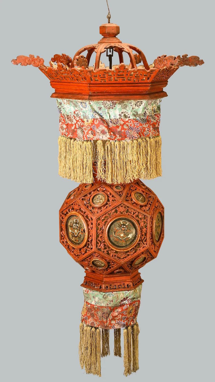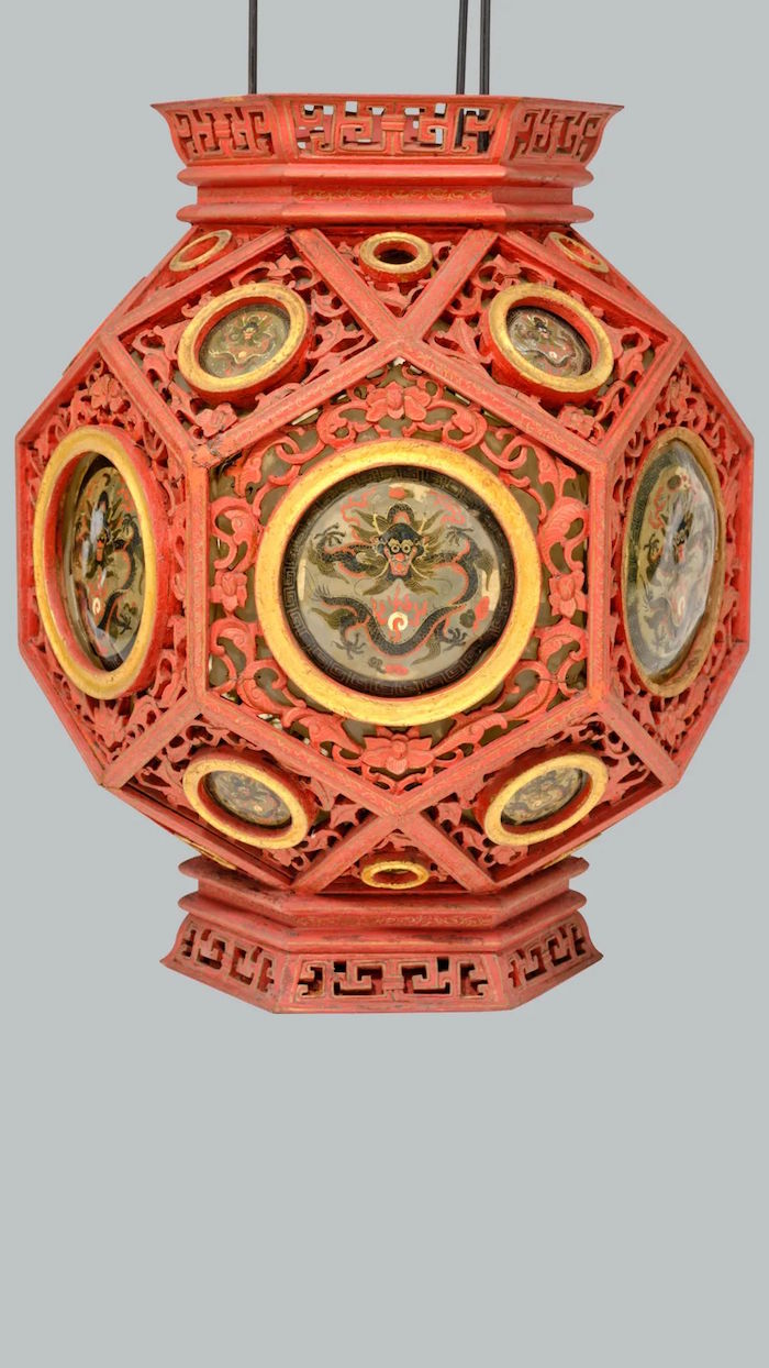 清红漆镂雕镶嵌牛角画龙纹绣球式庆成灯故宫博物院藏