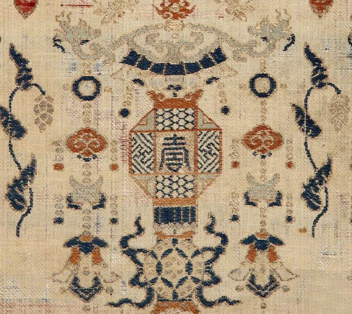 清康熙银白色地灯笼纹织金锦故宫博物院藏