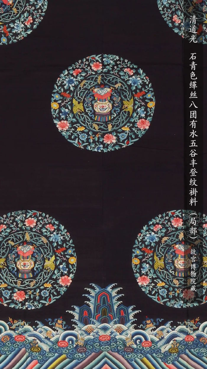 作为织绣品常见的纹饰种类,灯笼纹于宋代就已出现,至明清时期发展成多种形式,如梅花形、荷花形、银锭形、如意头形等,寓意“五谷丰登”“天下乐”。