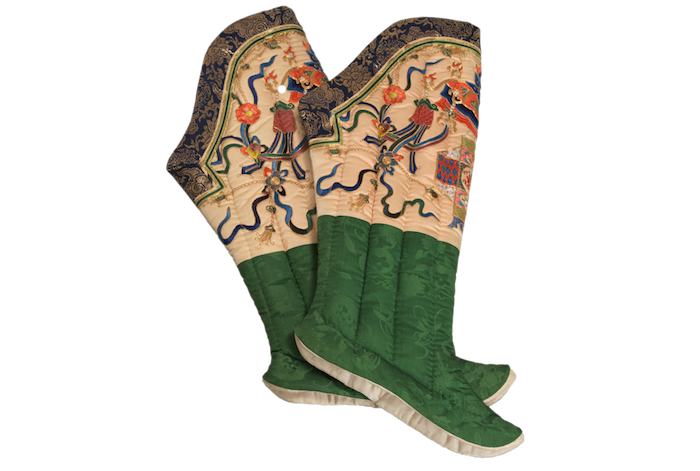 清康熙米黄色缎绣五谷丰登纹高腰棉袜故宫博物院藏