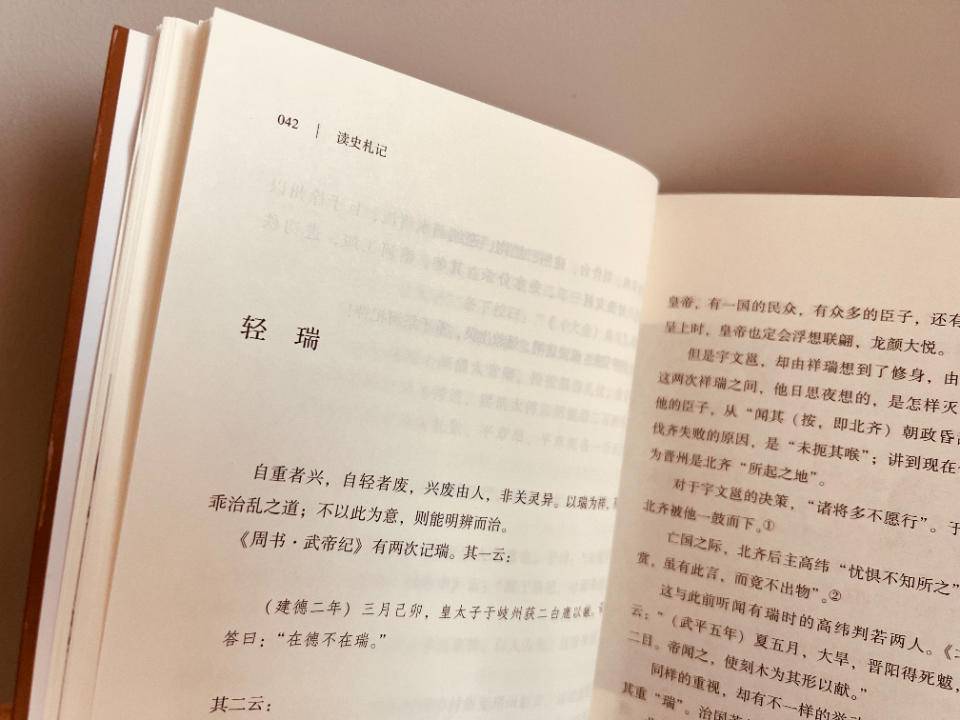 《读史札记》篇章标题都是两字短语,让这部作品形成了独特的体例。张延庆告诉记者,这些文章有的是借用古语,有的则自己提炼。文章观点多在文末点睛,有的则在文中或是篇首,点出篇章大义;引用部分和过渡部分,也尽量凝炼,似断似连中,追求的是文风的一致。不少语句或段落是文言,这是表达克制住的情况,不少又是白话,这便是克制不住的情况。“表述上有文有白,一是长时间抄史书,有了一定的偏向性,同时受到陈寅恪《唐代政治史述论稿》《柳如是别传》等的影响。今人完全用文言来写,不太容易也大可不必,但如果不顾及全书洗练的文风,也容易出现言不逮意的情况。”