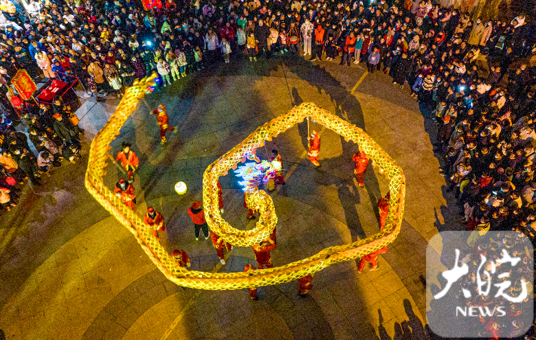 大皖新闻讯 2月4日,合肥市庐江县庐城镇三里社区街道广场,来自黄屯老街的民间艺人正在舞动“巨龙”,欢欢喜喜闹元宵。