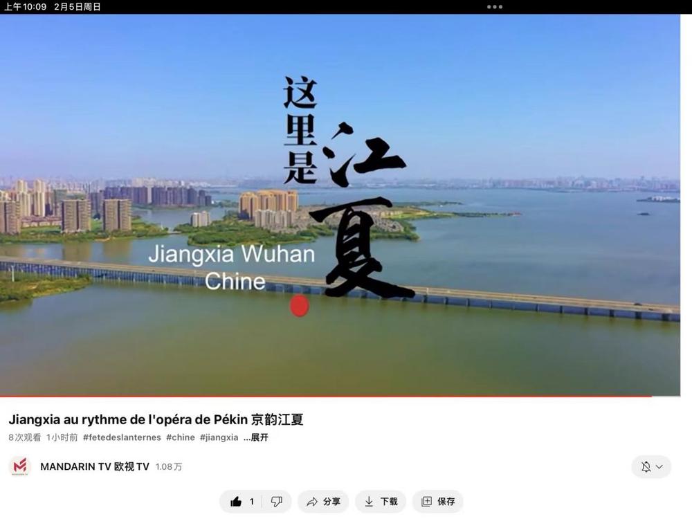(欧洲卫视YouTube账号展示《京韵江夏》短视频。)