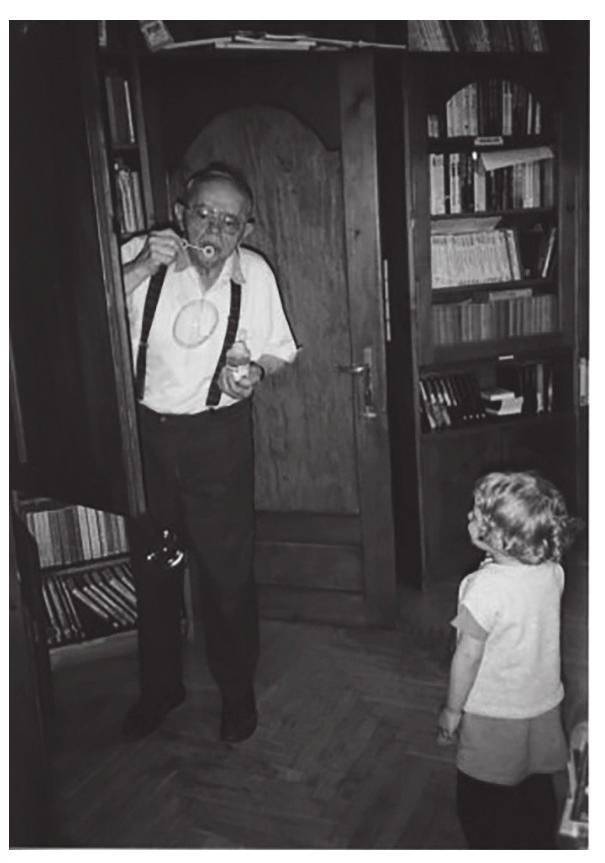 2001年,和孙女艾尼雅吹泡泡的莱姆