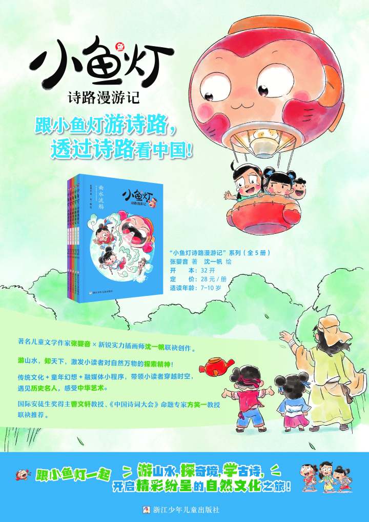 两位作家强强联合打造了“小鱼灯诗路漫游记”系列图书,这套书共5本,已入选“浙江省十四五出版规划”,第一本《曲水流觞》入选了“班班有读”共读书目,第二本近期即将上市。