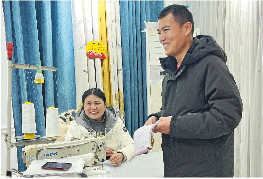 2013年,他们终于“钻”出车库,开了现在这家窗帘店。窗帘店有两层,上下总共有100平方米。每天早上六七点钟,廖珮盛就骑着电动车载着刘晓晖一起到窗帘店。夫妻俩分工明确,廖珮盛负责安装窗帘,刘晓晖负责裁制窗帘。到了“五一”“十一”假期,窗帘店的生意进入旺季,忙的时候,两人连饭都顾不上吃。刘晓晖说:“这是一个工夫活。”一针一线都得磨时间,磨出孩子的学费,磨出房子的砖瓦,磨出一个家。