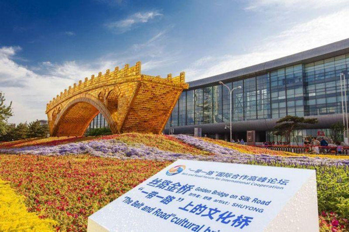 全国政协委员、大兴区政协常委、著名当代艺术家舒勇以艺术人文的方式阐述了“连接”这个概念,将东方文化融入世界民族大背景中,打造了世界上首个以构建人类命运共同体为主题,“一带一路”为语境的人文地标性景观雕塑《丝路金桥》。《丝路金桥》以古老的赵州桥为原型,长28米、高7.2米,由2万块“长城砖”大小的琥珀砖砌成,每块砖内部熔铸丝绸制作的各国国花——寓意在世界百花园里架起一座和平发展之桥。《丝路金桥》用国际化的艺术语言,向世界传达构建人类命运休戚与共、中国与世界紧密相连的价值观。
