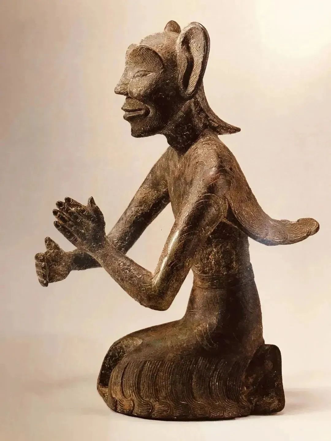 图2/西汉的羽人,陕西西安南玉丰村西汉墓出土(引自中国青铜器全集编辑委员会:《中国青铜器全集12:秦汉卷》,图版一三八、一三九)