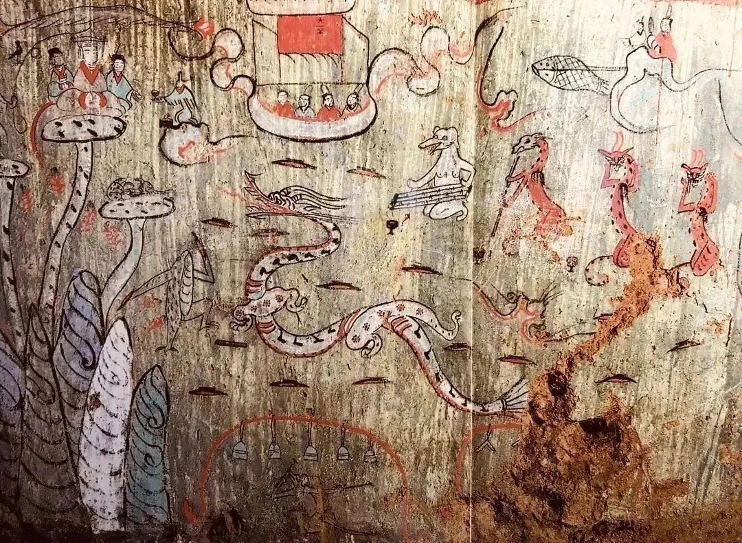 图3/东汉仙人与山水图,山西夏县王村东汉墓出土(引自徐光冀主编《中国出土壁画全集2:山西》,科学出版社,2012,图版十三)