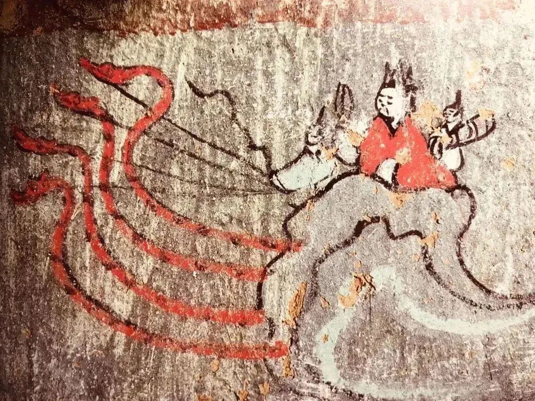 图15/升仙:上、中为2005年陕西靖边县杨桥畔杨一村东汉墓出土,下为2003年陕西定边县郝滩乡汉墓出土(引自徐光冀主编:《中国出土壁画全集6:陕西(上)》,图版八八、七二、六二)