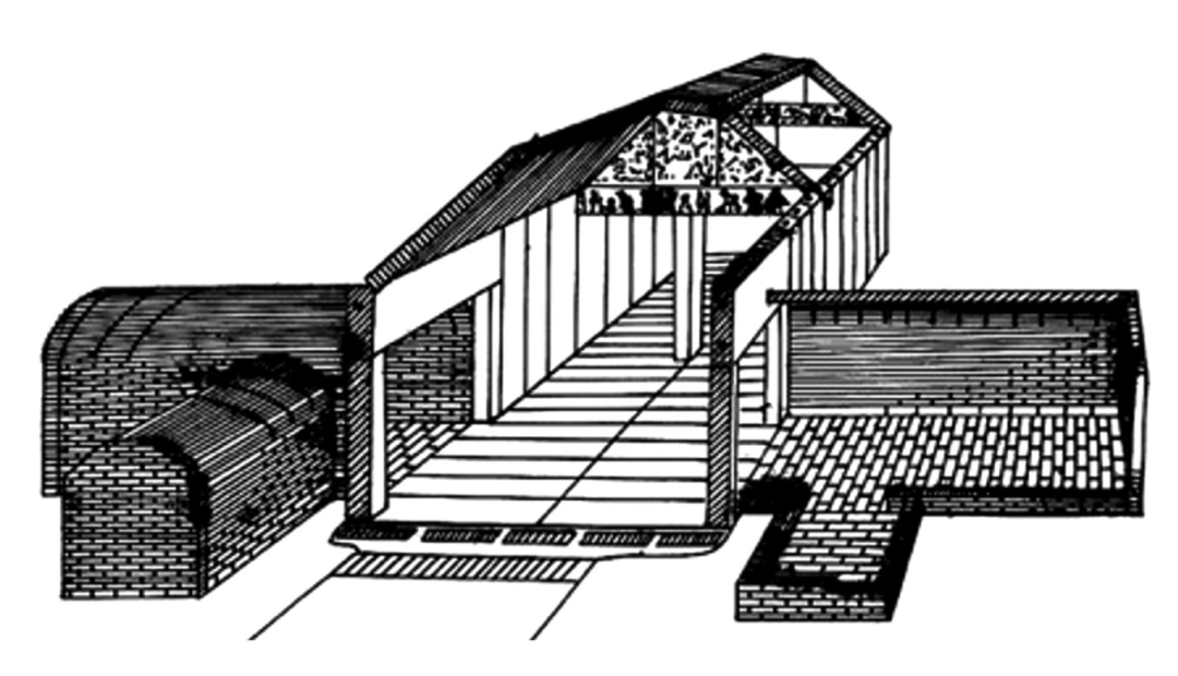 早在战国时期就已有将墓室视为死后居所的做法,曾侯乙墓中的漆绘门窗暗示着对于墓主灵魂已有“游”的概念。然而,此时期的墓葬中并未明确表示出宇宙观。将墓室空间既视为宇宙,又视为住宅的做法,目前仅能追溯到尚未发掘的秦始皇陵。