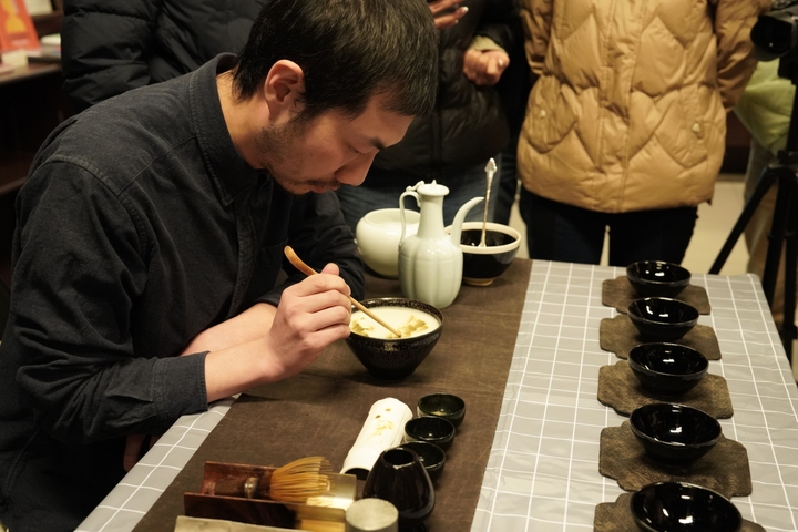 韩喆明展示点茶技艺浙江文艺出版社供图