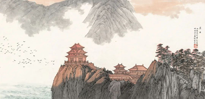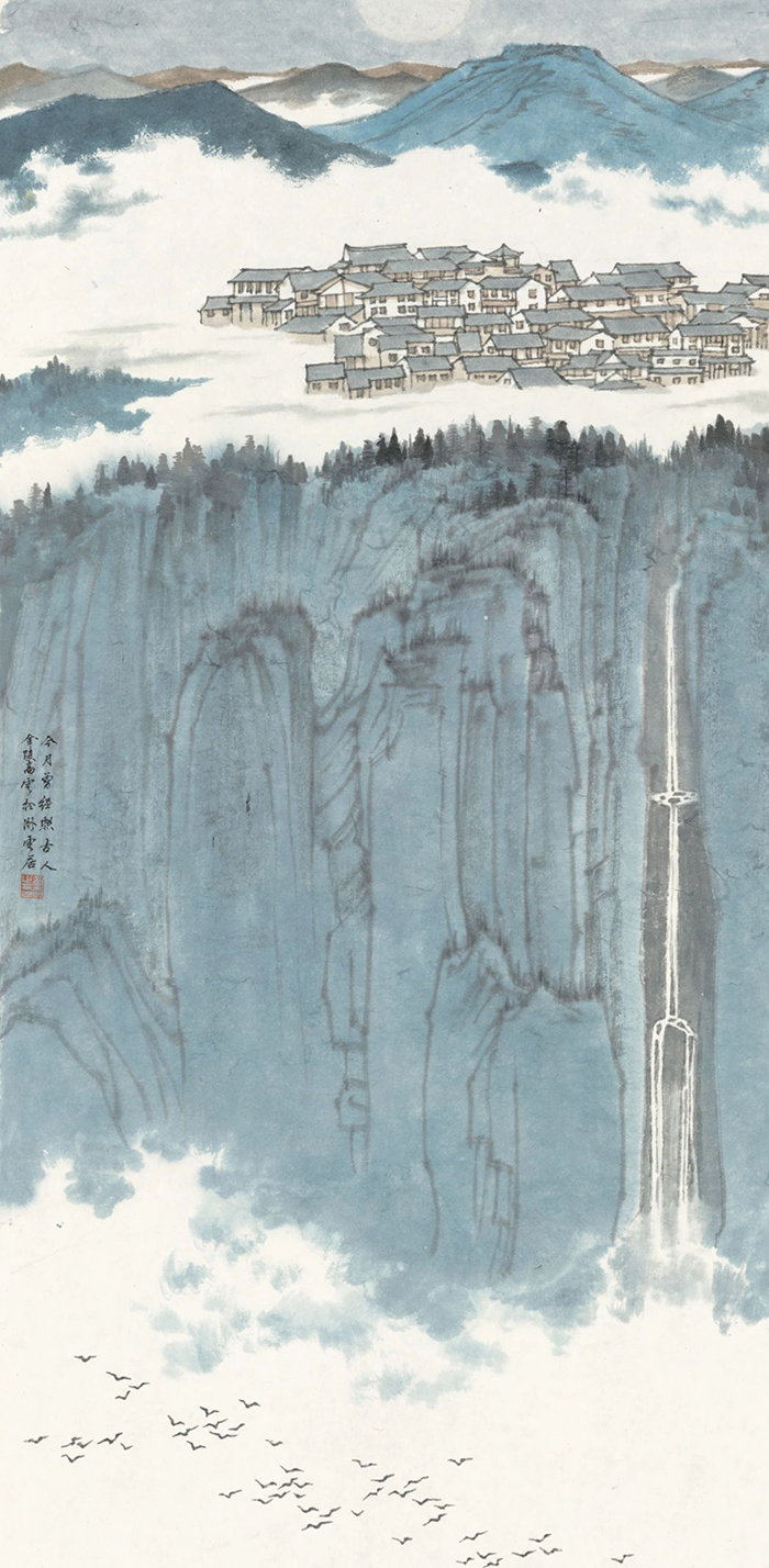 “后金陵”画风是当代江苏省优秀山水画家在新的时代背景下,在继承中华民族优秀传统基础上,以新绘画技巧,新构图模式,呈现出的新时代风貌。和傅抱石开创的新金陵画派以写生入画境促变传统笔墨不同,高云的山水画上溯明清,远追宋元,这种“古意”使他的创作在内心有了历史的参照,并涌动着当下时代创新的意念。
