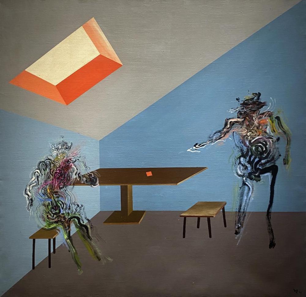夏阳,《阁楼》,1966年,布面丙烯、水彩。图片由艺术家提供。