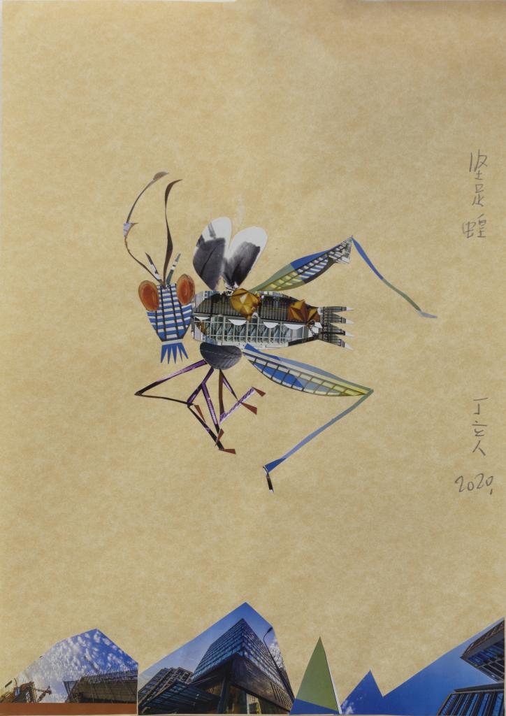 丁立人,《“昆虫”拼贴系列之坚足蝗》,2020年,纸本拼贴。图片由艺术家提供。
