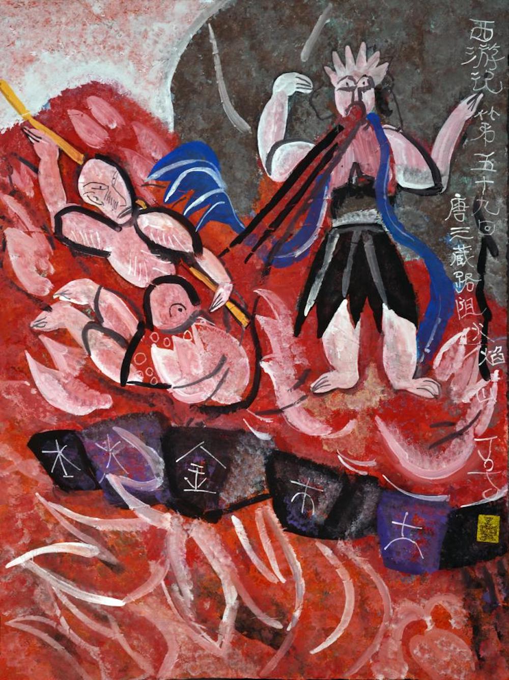 对于“西游记”的创作,丁立人将其归于“民间”,在他看来,民间艺术是乡土的艺术,极其丰富,自己在潜移默化受其感染,自然而然将民间艺术吸收入创作,《西游记》属于民间文学,“所以我画得特别起劲”。