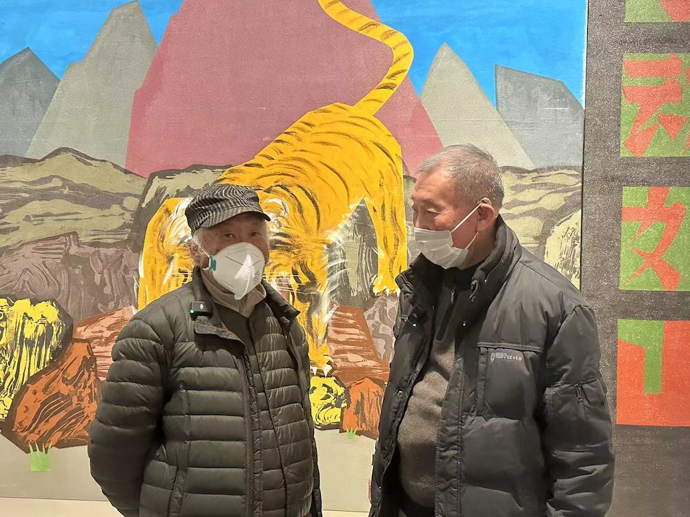 2月13日,两位艺术家来到上海当代艺术博物馆(PSA)参观正在举行的“丁立人、夏阳双人展”。这是开幕以来,两人首次到访,他们在作品上互相讨论取经,并同媒体与写作者分享自己的艺术体悟。