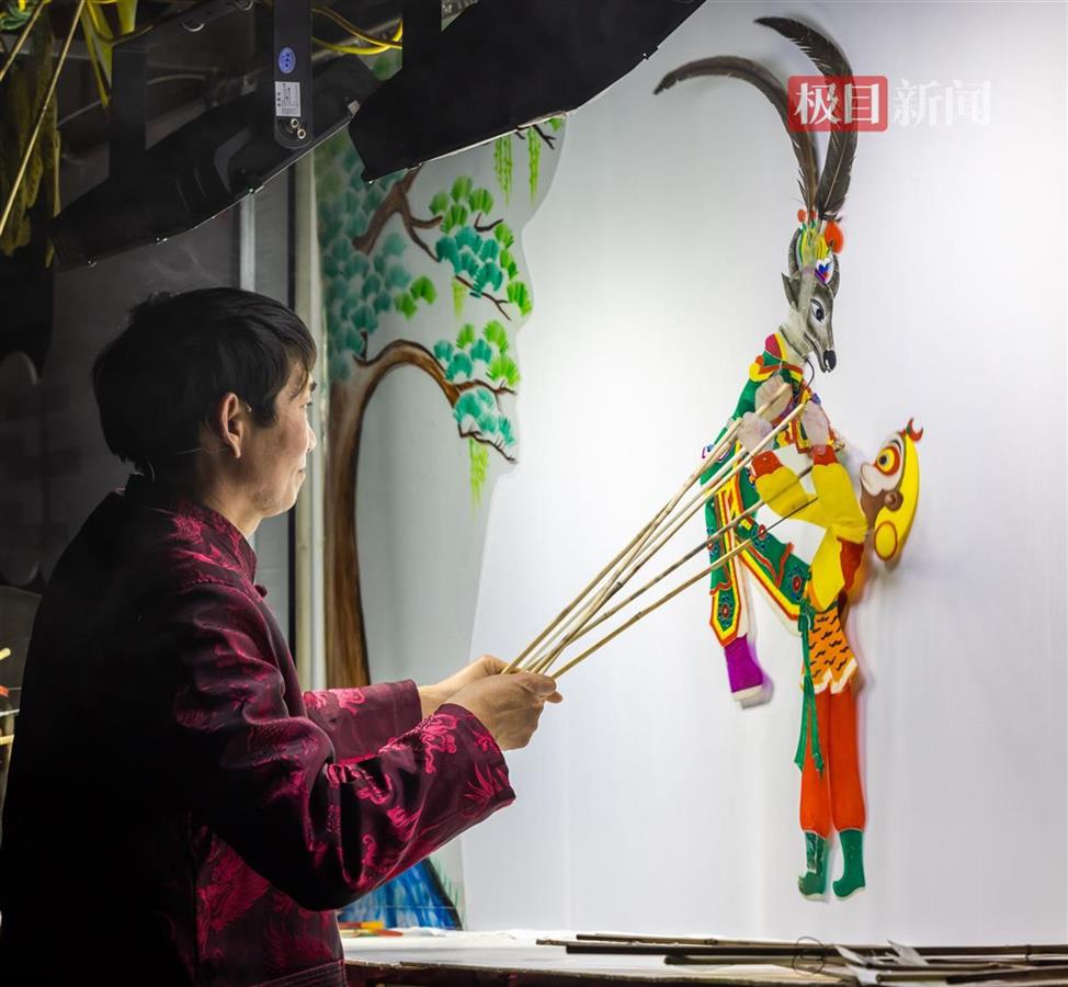 采访中极目新闻记者了解到,即将在昙华剧场连续奉献皮影戏演出的团队来自省内,主演陈红军14岁开始便学习制作和表演皮影戏。是非遗文化传承人和云梦县、孝感市两级政协委员。