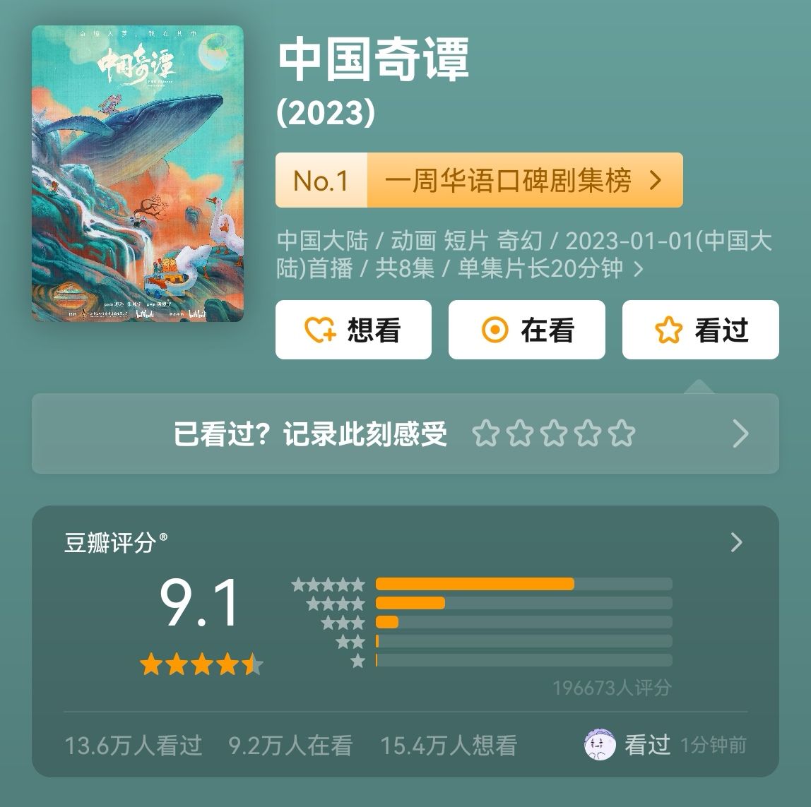 等了八个星期天,《中国奇谭》终于完结了。从开场的9.6到最后一集的9.2,冷静期没几天,又掉了0.1,然而近20万人打出的9.1分,还是硬核的。它证明,传统依然是有力地,从故事本身到技法表现力。