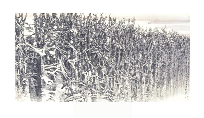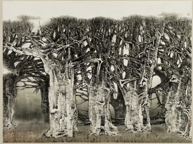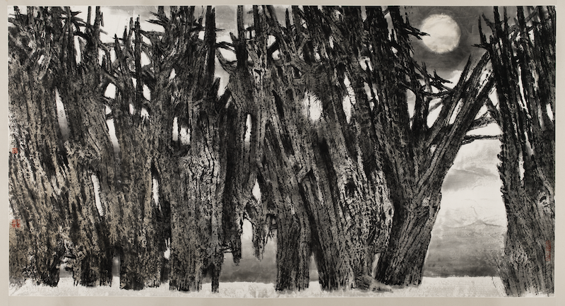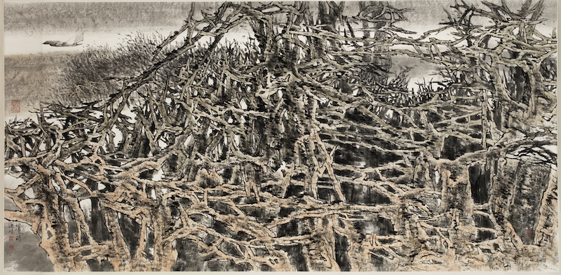 何怀硕《蟠木林》,1986年,纸本水墨设色,66×128cm