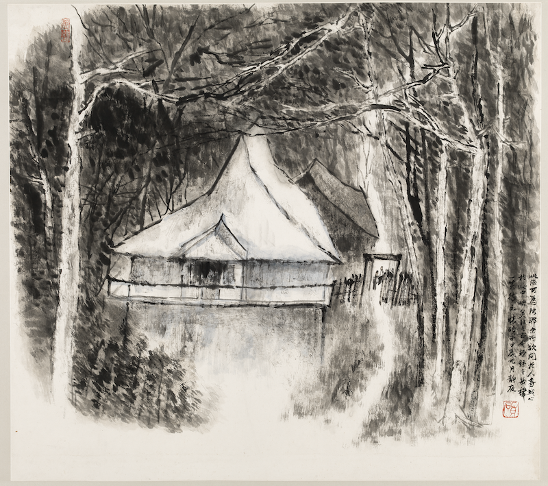 何怀硕《湖北艺院宿舍》,1960年(2010年补题),纸本水墨,51×40cm