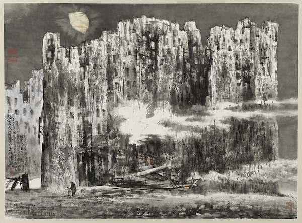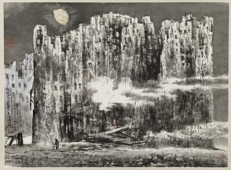 何怀硕《劫后》,2006年,纸本水墨设色,67×91cm