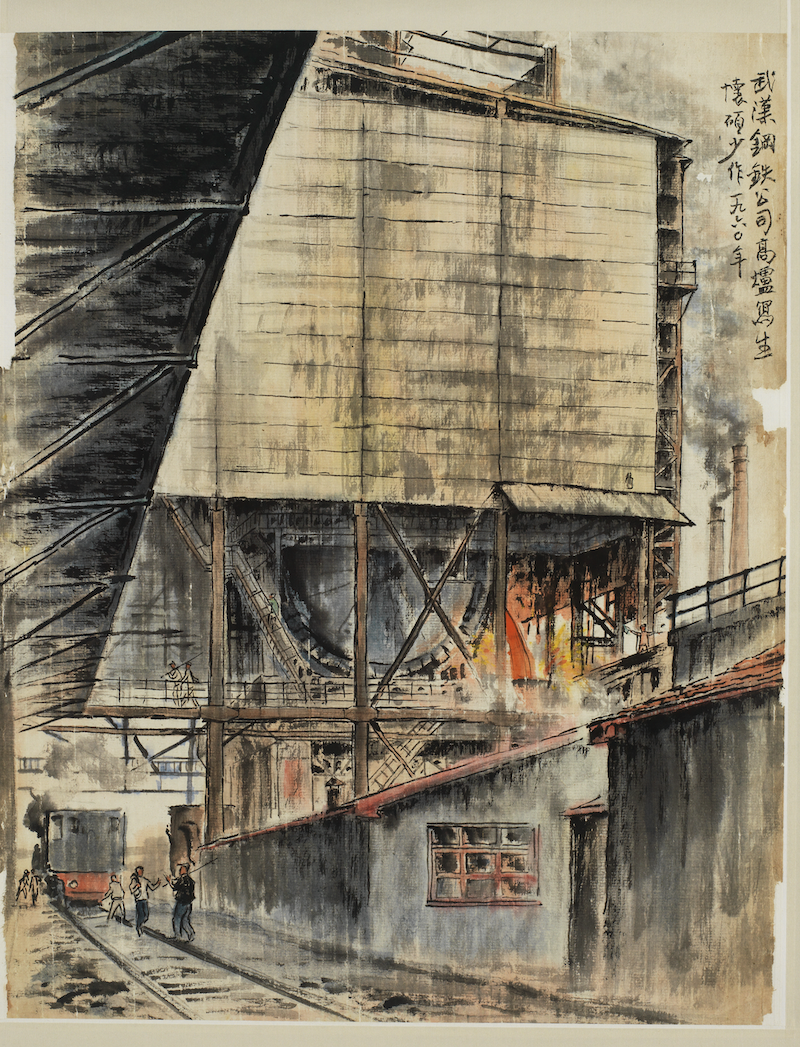 何怀硕《武汉钢铁公司高炉写生》,1960年,纸本水墨设色,52×41cm