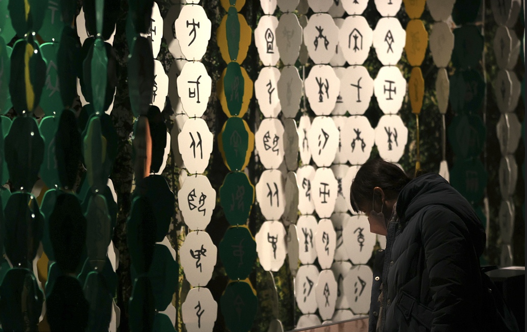 在“殷墟甲骨”专题展厅,设置了“立体画卷”“姓属林”“模拟占卜场景区”,利用空间立体复原以及声光电相结合的手段,带给观众全新的体验。