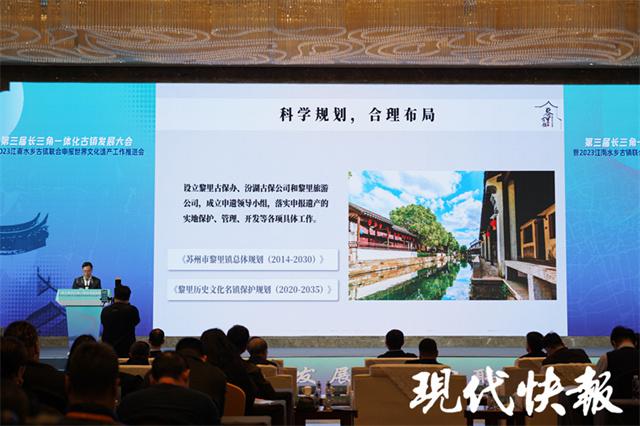 现代快报讯小桥流水人家,是无数文人墨客笔下的绝美意象,也是江南水乡古镇特有的文化符号,如何推动江南水乡古镇联合申遗?2月16日,第三届长三角一体化古镇发展大会暨2023江南水乡古镇联合申报世界文化遗产工作推进会在苏州市吴江区黎里古镇举办。来自国家文物局、文物古迹司、中国文化遗产研究院的相关领导,江苏、上海、浙江、安徽三省一市文化和旅游厅局负责人,行业专家及长三角古镇代表齐聚现场,共促江南水乡古镇联合申遗工作向纵深推进,共谋古镇群落文化休闲和旅游资源联动开发的新路径。