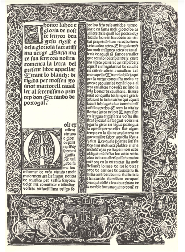 索尼娅告诉我图书馆官网的地址,并送我一份图书馆的宣传页。我看到上面介绍了该馆最珍贵的部分藏品,包括1449年,一位意大利文艺复兴时期作家FrancescoFilelfo的讽刺作品SatyraeHecatostica和1563年出版的《波特兰海图》,以及1490年出版的瓦伦西亚骑士祖亚诺·马杜尼(JoanotMartorell)所著的骑士小说《骑士蒂朗》等。其中,《骑士蒂朗》讲的是来自布列塔尼的中世纪骑士“白脸蒂朗”横跨欧洲的冒险故事。塞万提斯在《唐吉诃德》中提到过这本书,并认为它是有史以来最好的骑士小说。
