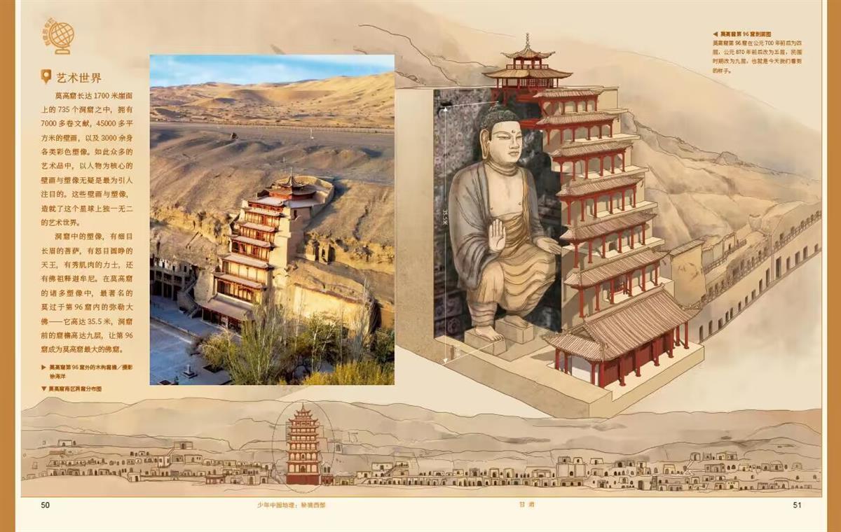 耿华军:对于当今的青少年来说,碎片化的知识灌输绝不是好的介绍方式,我们有必要按照某一个线索系统地讲解中国,提供青少年一个地理思维。于是,我们选择从一个独特而宏大的视角出发:三大时间尺度看中国。所谓的三大时间尺度看中国,也就是将整套书分为6500万年的中国、1万年的中国、100年的中国这三大部分,分别讲述中国的山川地貌、历史文明以及现代大国工程。