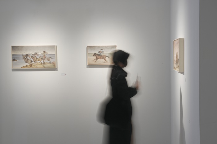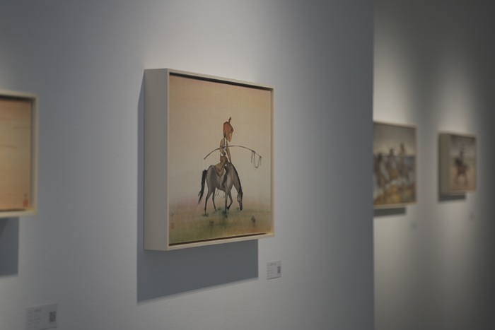 如果借用符号学的理论来进行分析,我们并不难发现,她在此系列作品中主要是运用三大类符号,即“小儿”、“马儿”与“山水”的不同组合方式来实现自己的目标。由此,她也寻觅到了一条远离当下喧嚣、繁杂或追求内心宁静的自我救赎之路。在终极的意义上,这其实可视为是一种“追梦者的出行”或“精神上的‘出世’”。故由此所产生的相关创作系列亦是她个人主观想象与不断升华的结果,相信那些但凡有着近似心理背景的人一定会与之产生强烈共鸣!