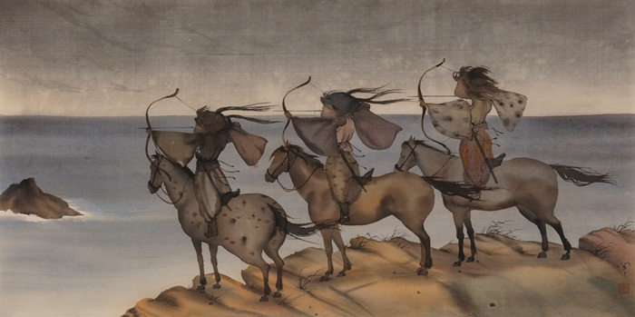《黄金三箭客》张闻绢本水墨69.5×35cm2022