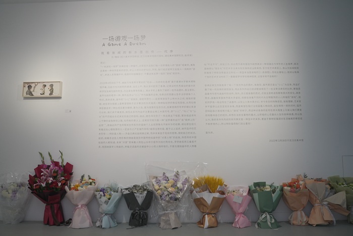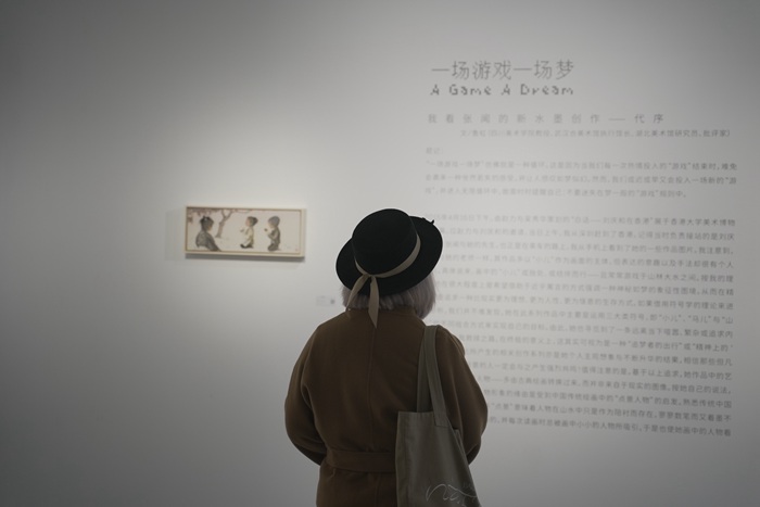 2023年2月11日,“一场游戏一场梦——张闻个展”在大千画廊开幕。展览由四川美术学院教授、武汉合美术馆执行馆长、湖北美术馆研究员、批评家鲁虹担任策展人,共展出艺术家张闻近来创作的包括《水清石礧礧》《读松图集》《姐姐》《诸神的黄昏》《列阵》等在内的绢本、纸本作品四十余幅。展览面向公众开放,并持续至3月31日。