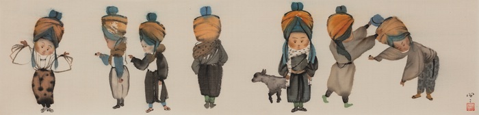 至于在艺术表现上,我认为张闻既很好发挥了传统没骨画法之所长——其蓝本当是梁楷的《八高僧图》,但在此基础上,她却以极具个性的艺术手法构筑了一幕幕是梦非梦的精神图景,这是非常不容易的!张闻近来又向我发来了另一个系列作品的图片。我发现,虽然其还是以“小儿”为主体,而且扩展了她一向采用的表现技法,但此系列作品已经调整或降低了一些没骨法表现的比例,更强调画面书写感与画画时的动作。另外,无论是画面的图式,还是主题和造型都有很大的变化。具体而言,画面背景虽依然是大多留白,但那些穿着不同时代与文明服饰的小儿所做的“游戏”,就如同梦境一般出现在了画面中,以至让人有亦真亦幻、非今非古的特殊感受。按我理解,艺术家并不是想以此否定现实本身,而是希望在我们注视画面人物动态,且在哂而一笑的同时,猛然回味起自己曾经努力投入“游戏”的样子。而这种对自身的反观在很大程度上又能让我们更客观地看待自己的经历,并想办法抓住事物的重点,以积极的心态面对人生的各种境遇。所以我认为,新的系列与先前的系列其实是一种互补的关系,更由于其特别强调对生活抽离的审视或不断参悟内心,所以特别值得我们加以重视!