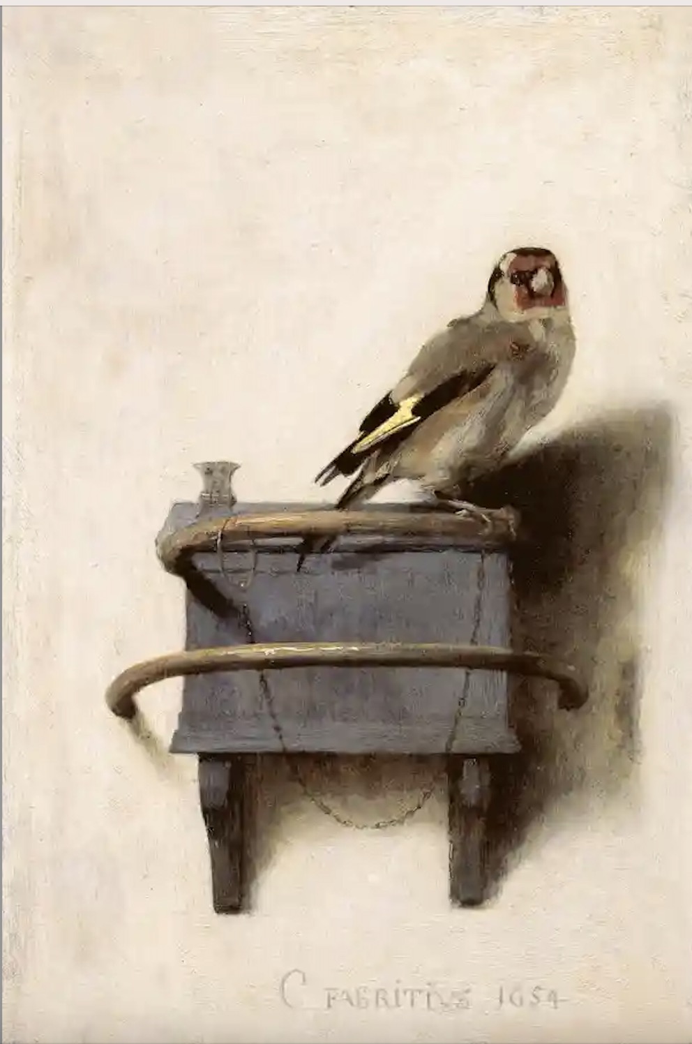 卡里尔·法布里提乌斯,《金翅雀》,海牙莫瑞泰斯皇家美术馆藏,他被怀疑是维米尔的老师。