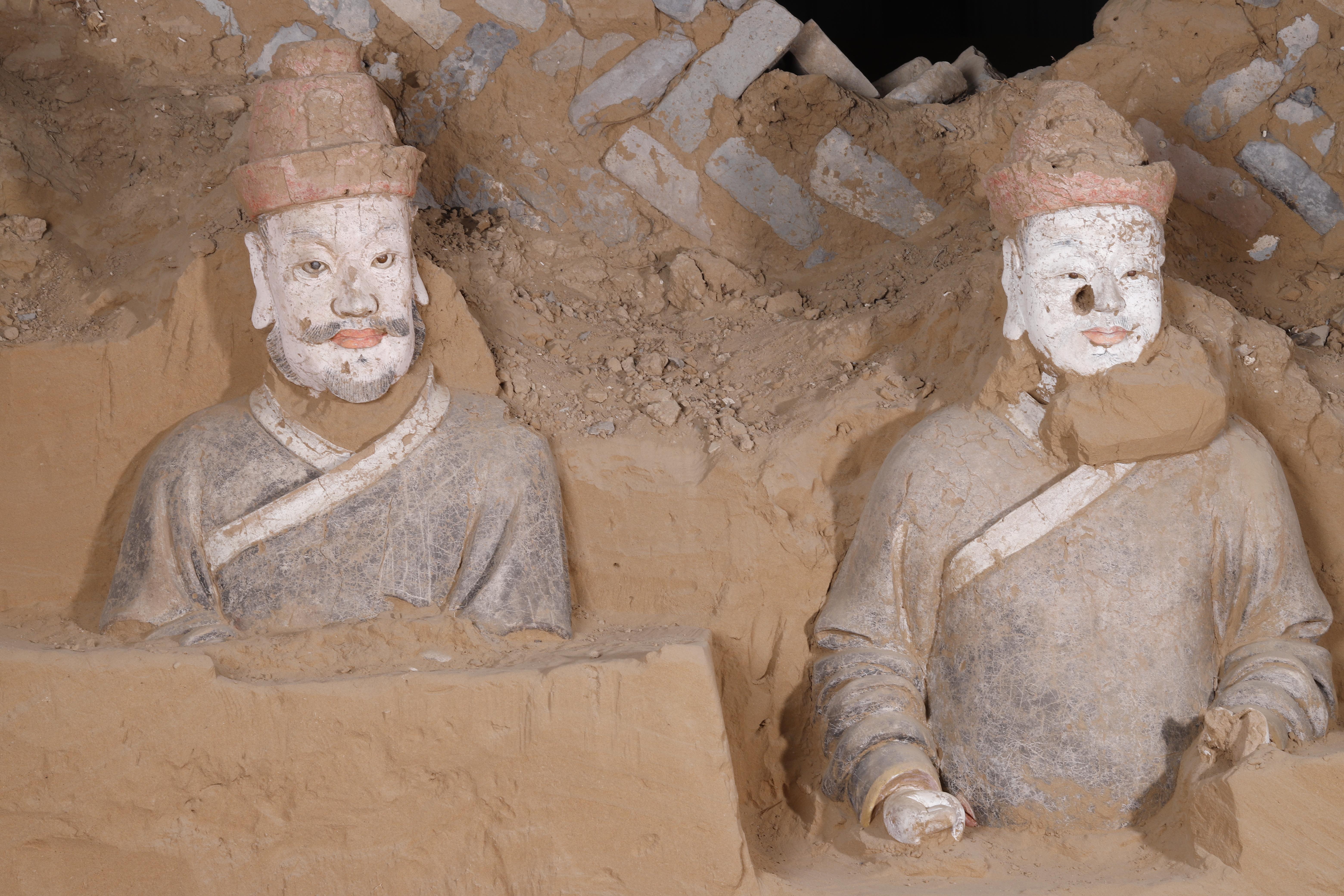 清平堡遗址出土的彩绘泥塑。陕西省考古研究院供图