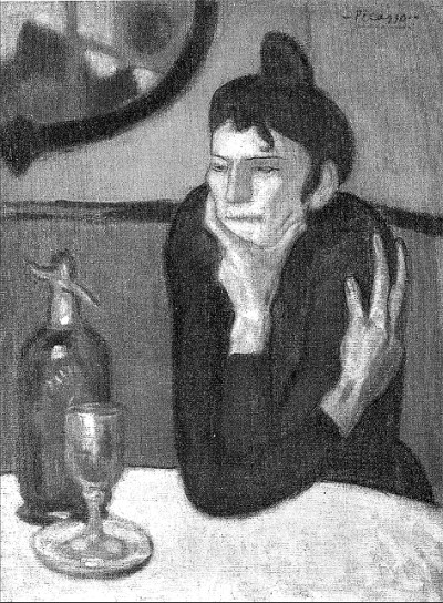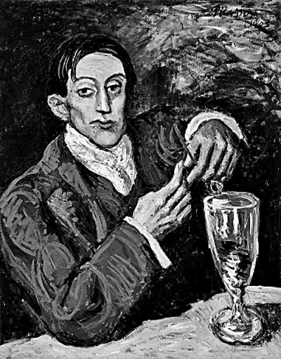 毕加索作品《喝苦艾酒的人》(1901)资料图片