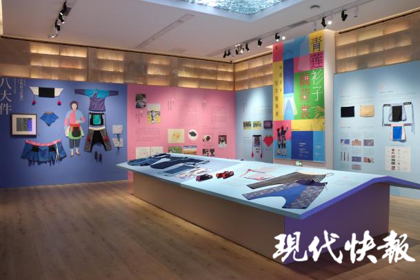 不同于一般的传统服饰展,吴文化博物馆“青莲衫子藕荷裳——甪直水乡妇女服饰展”展陈整体选用明亮的色调,大胆使用撞色背景,并且取消了部分玻璃展柜,使得观众能够更加近距离观察服饰细节。整体风格清晰活泼,更符合现今观众的观展审美,传统的乡土的服饰文化在活泼新颖的展示方式中得到更好的传播。
