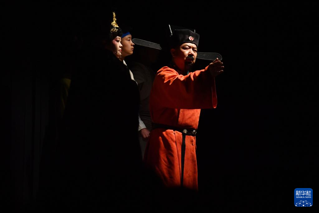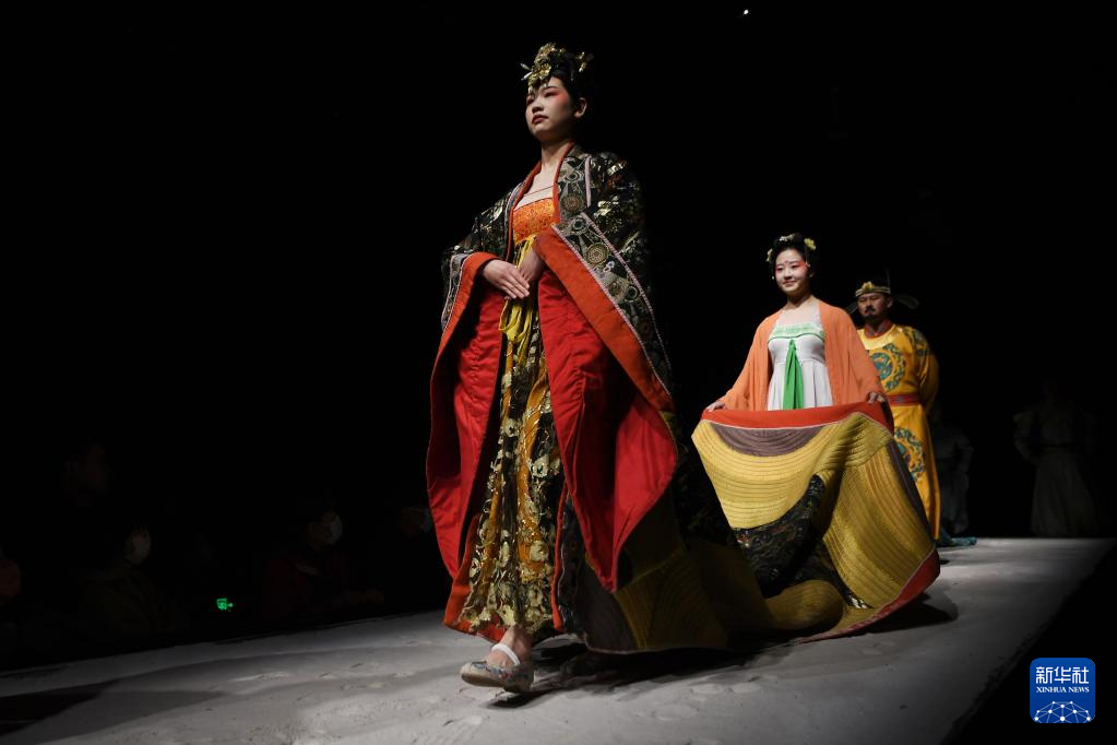 3月14日晚,演员在大型室内情景体验剧《又见敦煌》中表演。