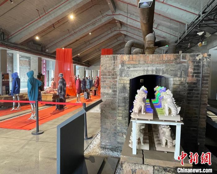 走进园区,处处可见琉璃制品。曾经的厂房,保留了一口釉烧隧道窑,地面铺设轨道运送窑车也一并保留。印有X光透视效果创意图案的时尚服装、鞋子、手袋,在暖色灯光的照映下,不仅展现科技与艺术的跨界之美,也让传统与现代在这里交相辉映。