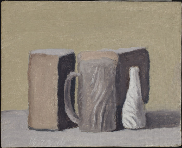 GiorgioMorandi,Naturamorta,1959.Oiloncanvas,20,8x25,3cm.致谢Mazzoleni,London-Torino