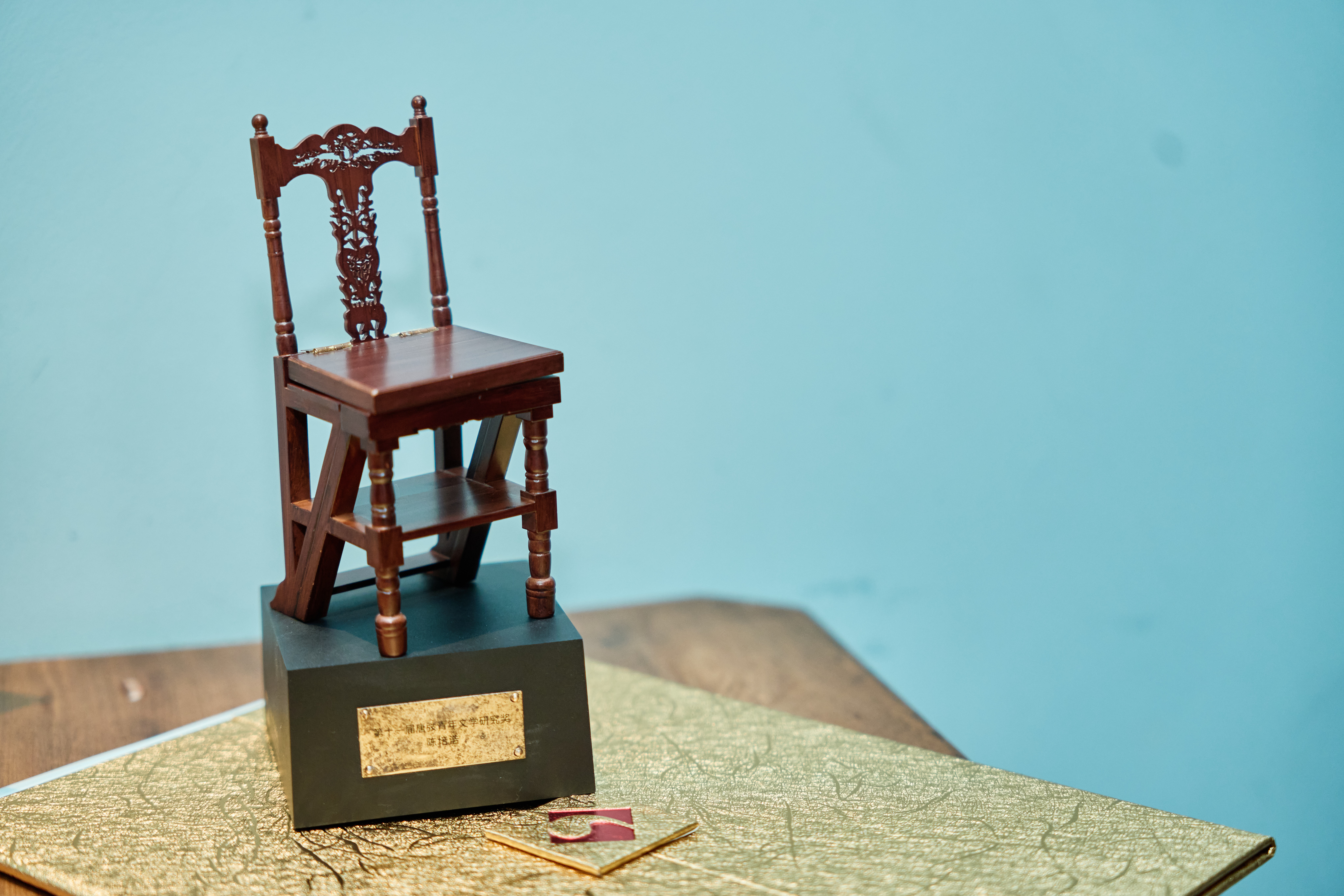 对中国现代文学馆馆藏的唐弢书椅进行3D复原等比例缩小的奖杯