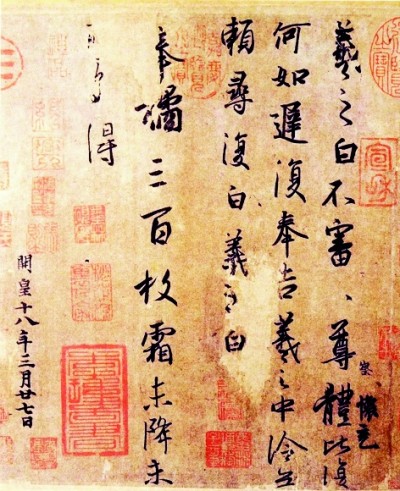 孙过庭以《书谱》名世,短短三千七百余言,字字珠玉,熠熠生辉。书法历经商代甲骨文的稚拙期,先秦大篆与秦代小篆的篆书期,再到两汉隶变,实用与尚美并存,进入艺术期,终至魏晋南北朝士族精神介入,篆书、隶书、草书、楷书、行书诸体演变完成。历览前代书史,周以书为教,汉以书取士,晋置书学博士,唐代推崇大王。初唐四大家虽未完全脱出二王媚逸遗风,但各具特色各有创新。盛唐张旭、张怀瓘、颜真卿出世,书法与诗歌绘画相辉映,此时的书法,突破模仿王羲之的旧传统。“背羲、献而无失,违钟、张而尚工”一语,体现了孙过庭的书法观,法古而不泥古,以传承促创新。笔墨当随时代。