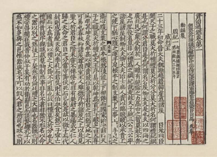 “胡注”延续着浙东史学“经世致用”的传统,梳理并总结历史上兴衰成败的经验教训。胡三省对文中记载的魏赵韩三家分晋之事予以抨击:“三卿窃晋之权,暴蔑其君,剖分其国,此王法所必诛也。”