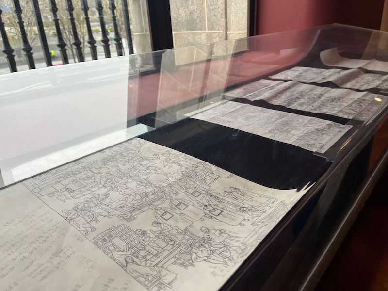 展厅现场,展柜中呈现的草图